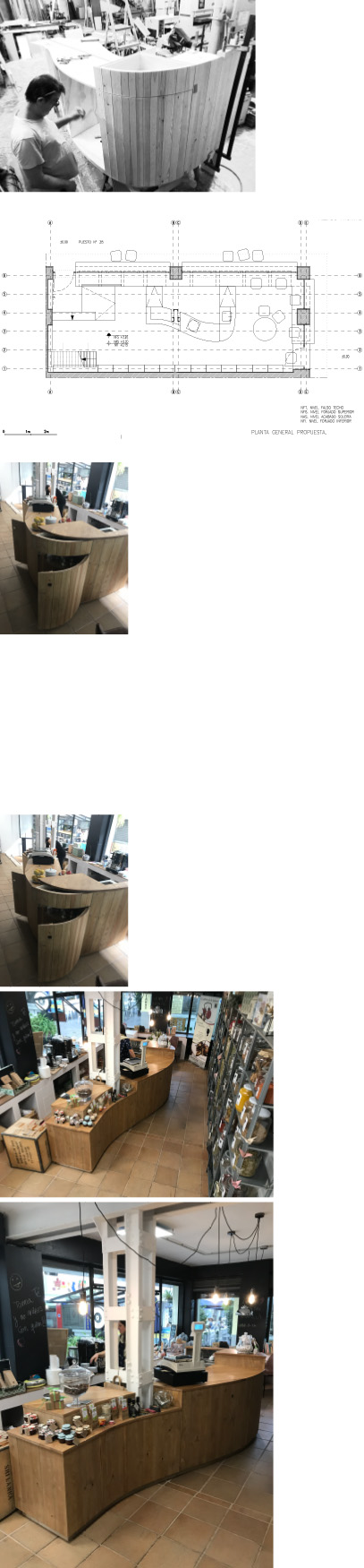 Es un mueble susceptible de cerrarse de manera que como elemento abstracto singular y aislado dentro del espacio fomente el libre tránsito y posibilite abrir las opciones de uso del local a eventos, reuniones y/o exposiciones y así convertir el puesto en un lugar de atractivo especial dentro del mercado de abasto, contribuyendo con ello al desarrollo del mismo.