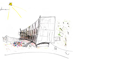 Der Neubau einer Kindertagesstätte bietet eine Möglichkeit an, mit derselben zukunftsorientierten Einstellung die Suche nach Lösungen für das Zusammentreffen beider Disziplinen anzugehen. Heute bedeutet das, eine Struktur herauszuarbeiten, die die notwendige räumliche Abstraktion darbietet, um wandelnde Raumkonstellationen beherbergen zu können. Hierin sollen sich nachhaltig neue pädagogische und Erziehungskonzepte entfalten und prüfen lassen.